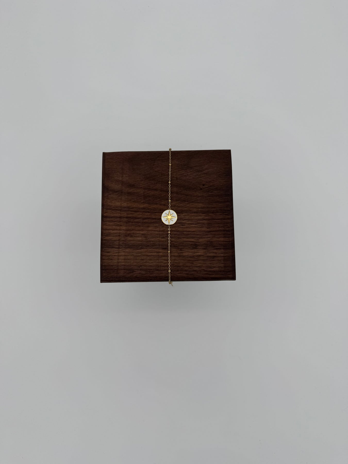 Le bracelet doré orné d’un médaillon étoile sur fond nacré séduit par son élégance délicate et son esprit céleste. Son design fin et lumineux apporte une touche poétique et raffinée au poignet, parfait pour sublimer vos tenues du quotidien comme vos looks plus habillés.