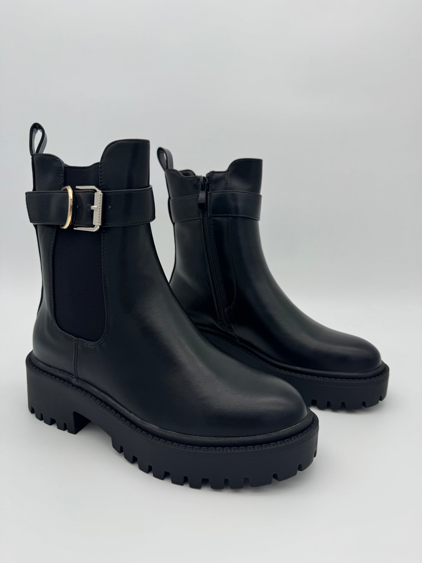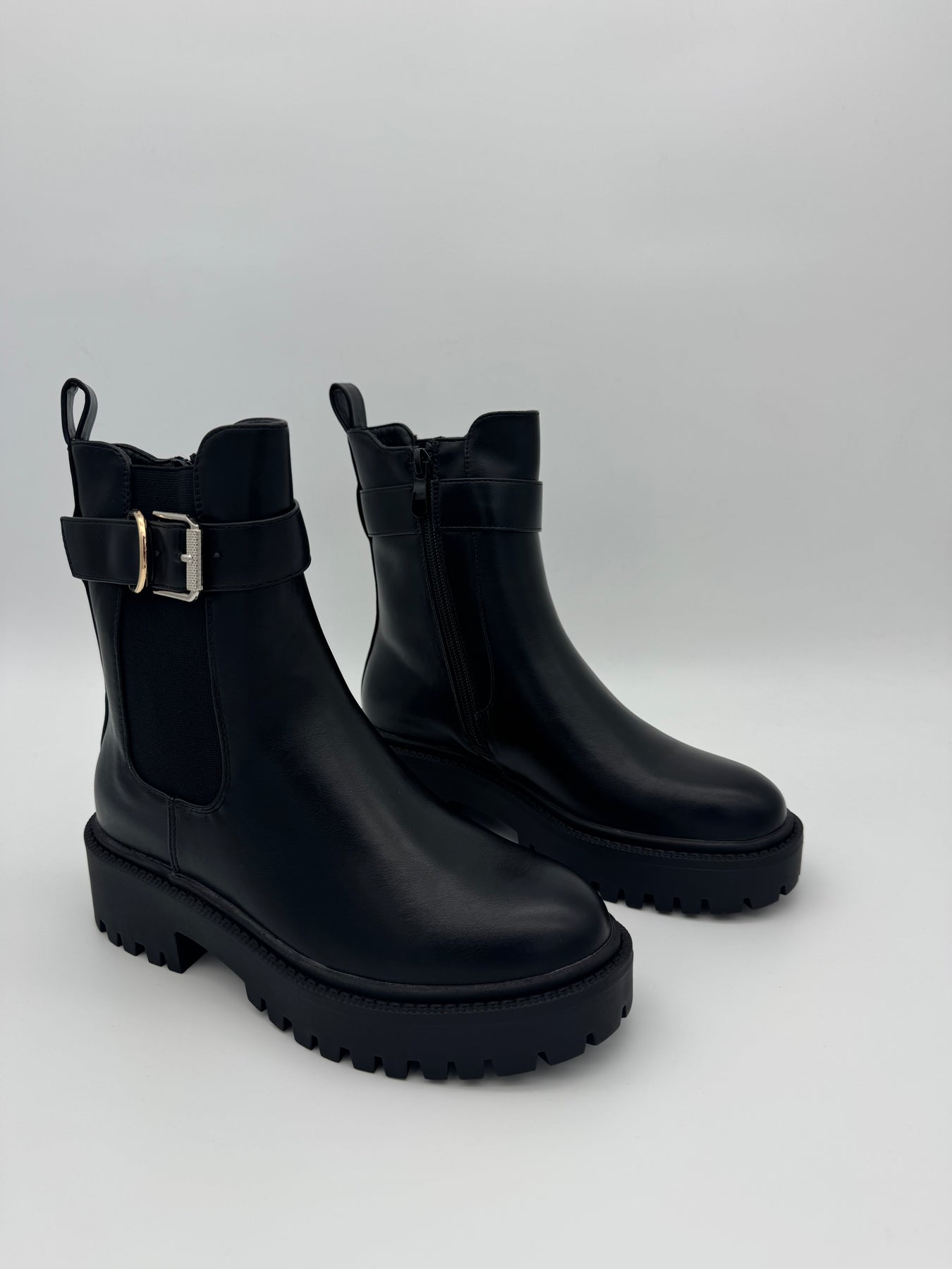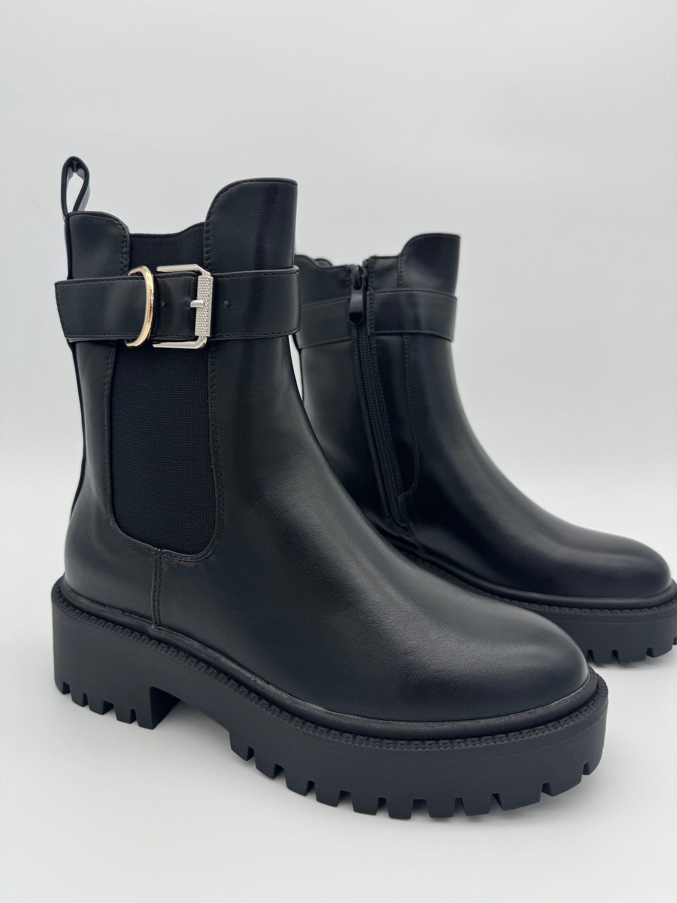 Les bottines Ninon sont le parfait mélange entre élégance et caractère. Leur design épuré en noir profond est sublimé par une boucle dorée sophistiquée, tandis que leur semelle épaisse crantée apporte un style moderne et affirmé. Confortables et tendance, elles subliment aussi bien les tenues du quotidien que les looks plus habillés.