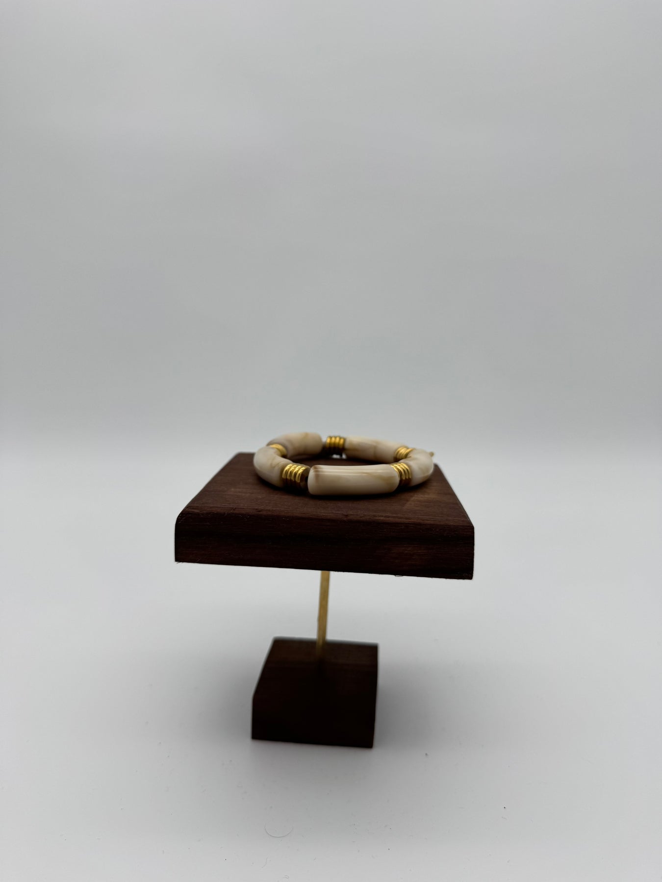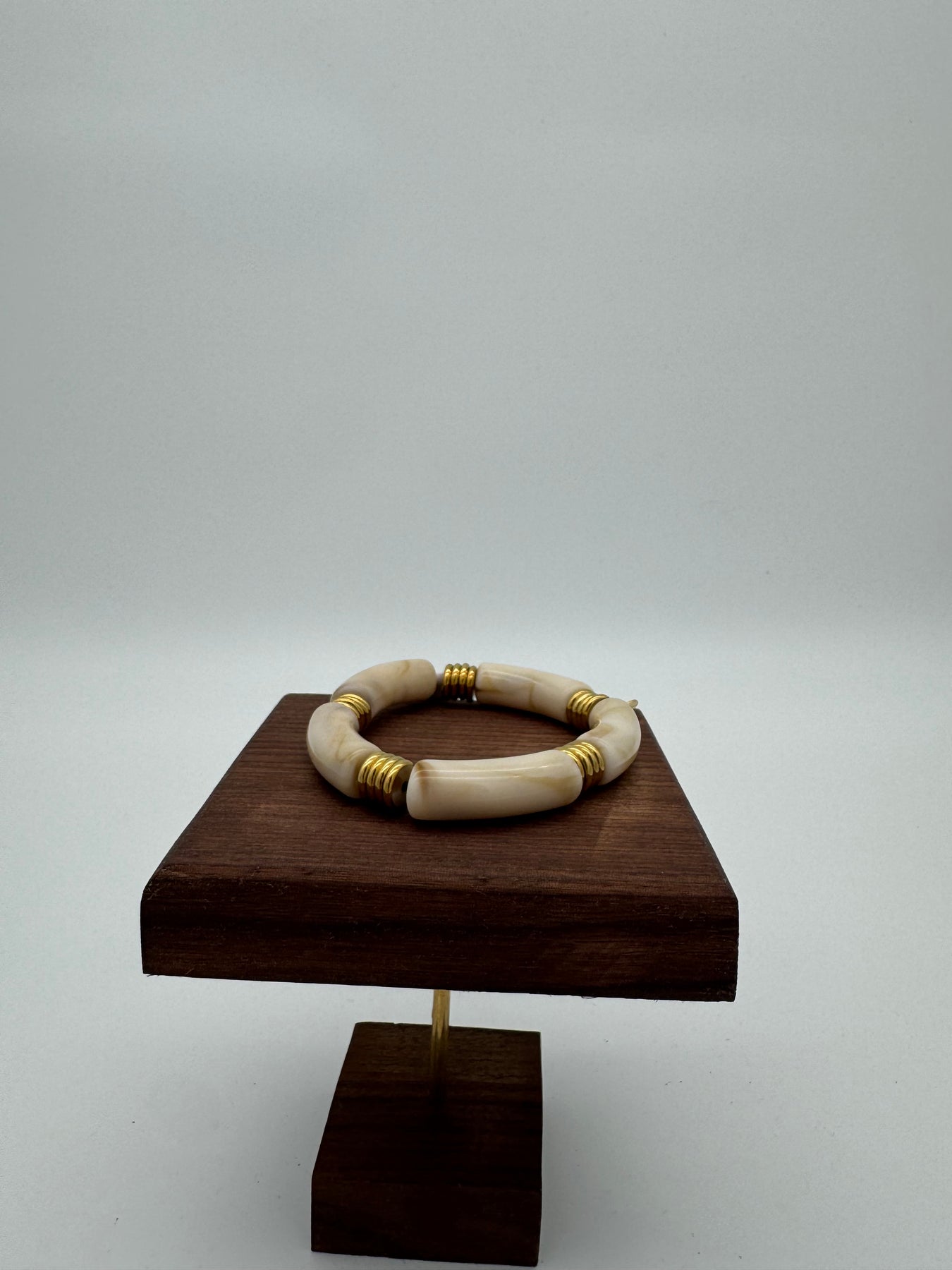 Le bracelet en perles tubulaires effet nacré crème séduit par son élégance naturelle et ses nuances douces légèrement marbrées. Les détails dorés apportent une touche chic et lumineuse, idéale pour sublimer vos tenues du quotidien comme vos looks plus habillés.