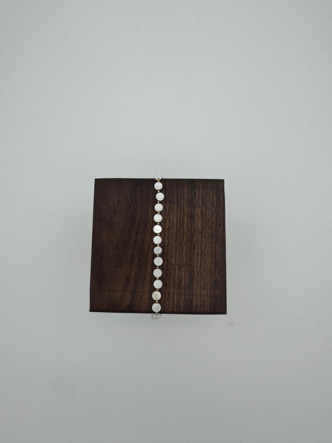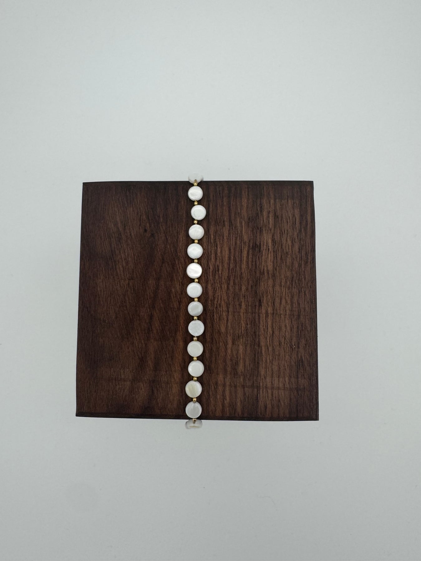 Le bracelet doré à perles nacrées séduit par son allure douce et lumineuse. Ses perles délicatement disposées apportent une touche d’élégance naturelle, pour un bijou intemporel qui habille le poignet avec finesse et raffinement.