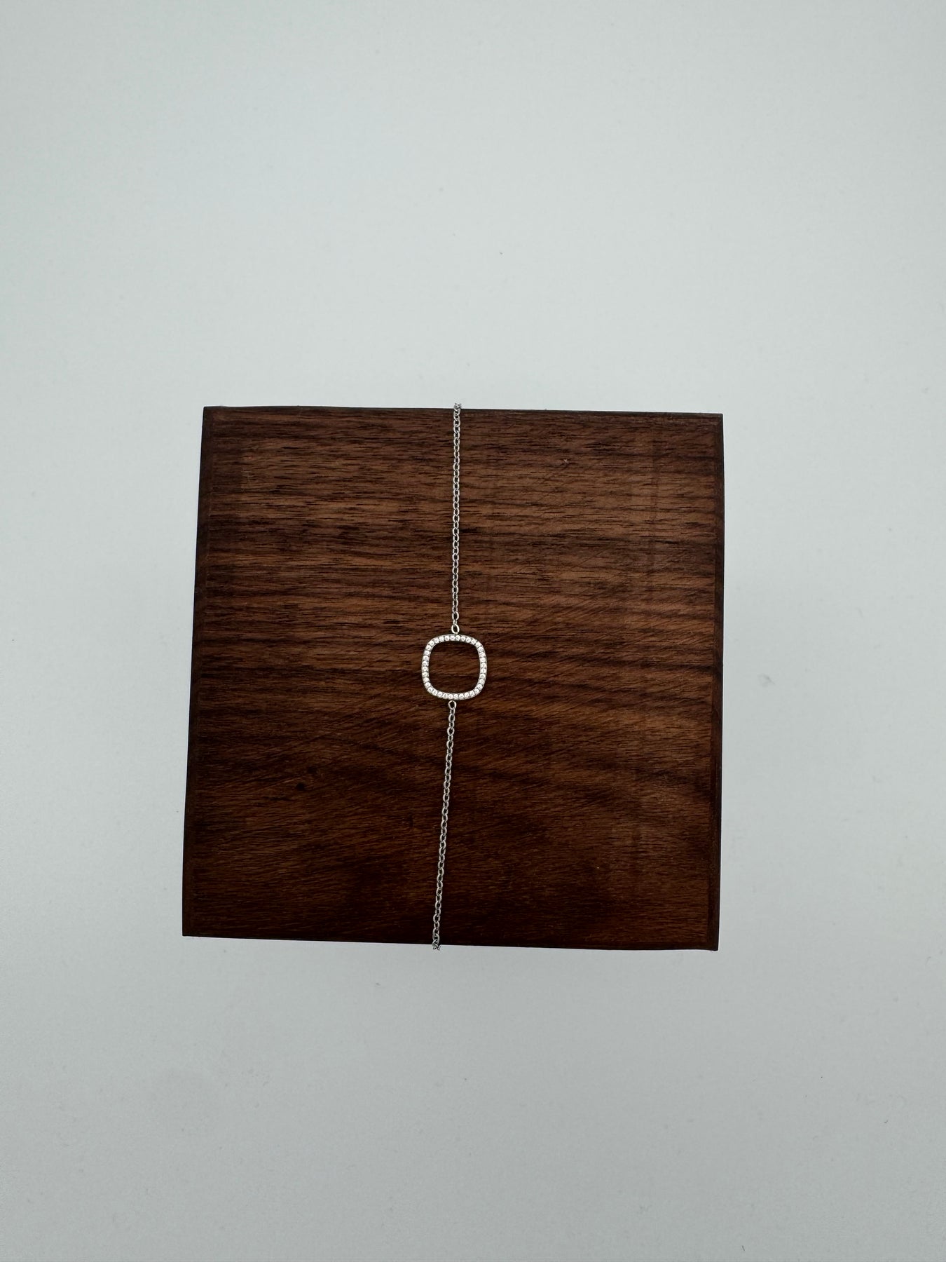 Le bracelet argenté à maillon fin et centre carré serti séduit par son élégance minimaliste et son éclat délicat. Son motif central géométrique orné de petits strass apporte une touche chic et moderne, pour un bijou raffiné à porter au quotidien comme en soirée.