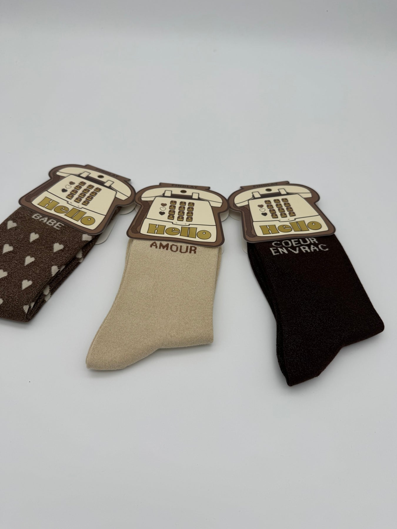Les chaussettes “Amour” apportent une touche délicate et chaleureuse à votre tenue du quotidien. Leur coloris beige neutre et élégant s’accorde facilement avec tous les styles, tandis que leur petit mot brodé ajoute une note tendre et discrètement stylée. Confortables, douces et féminines, elles se portent aussi bien à la maison qu’avec vos looks du jour.