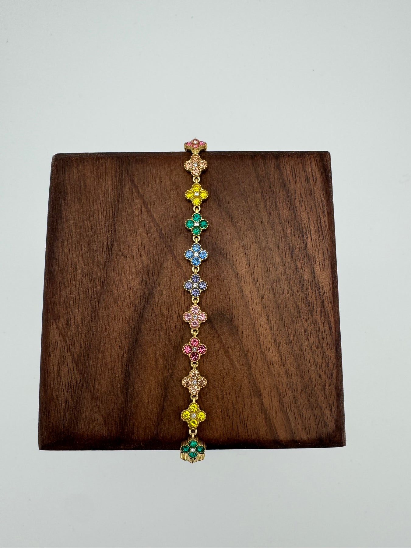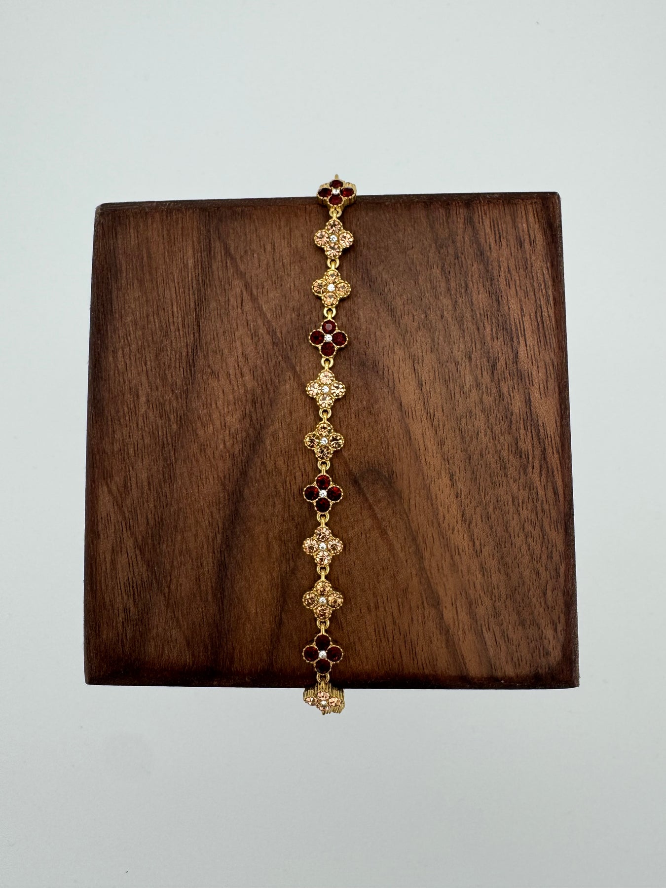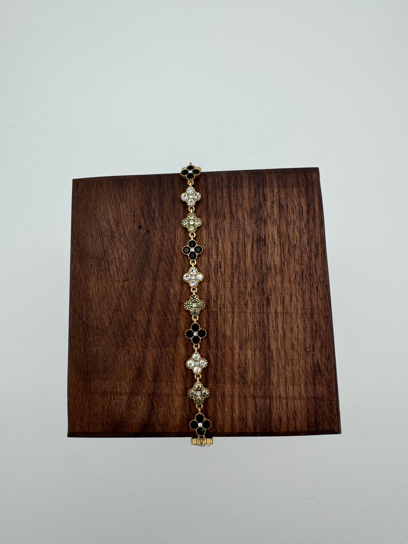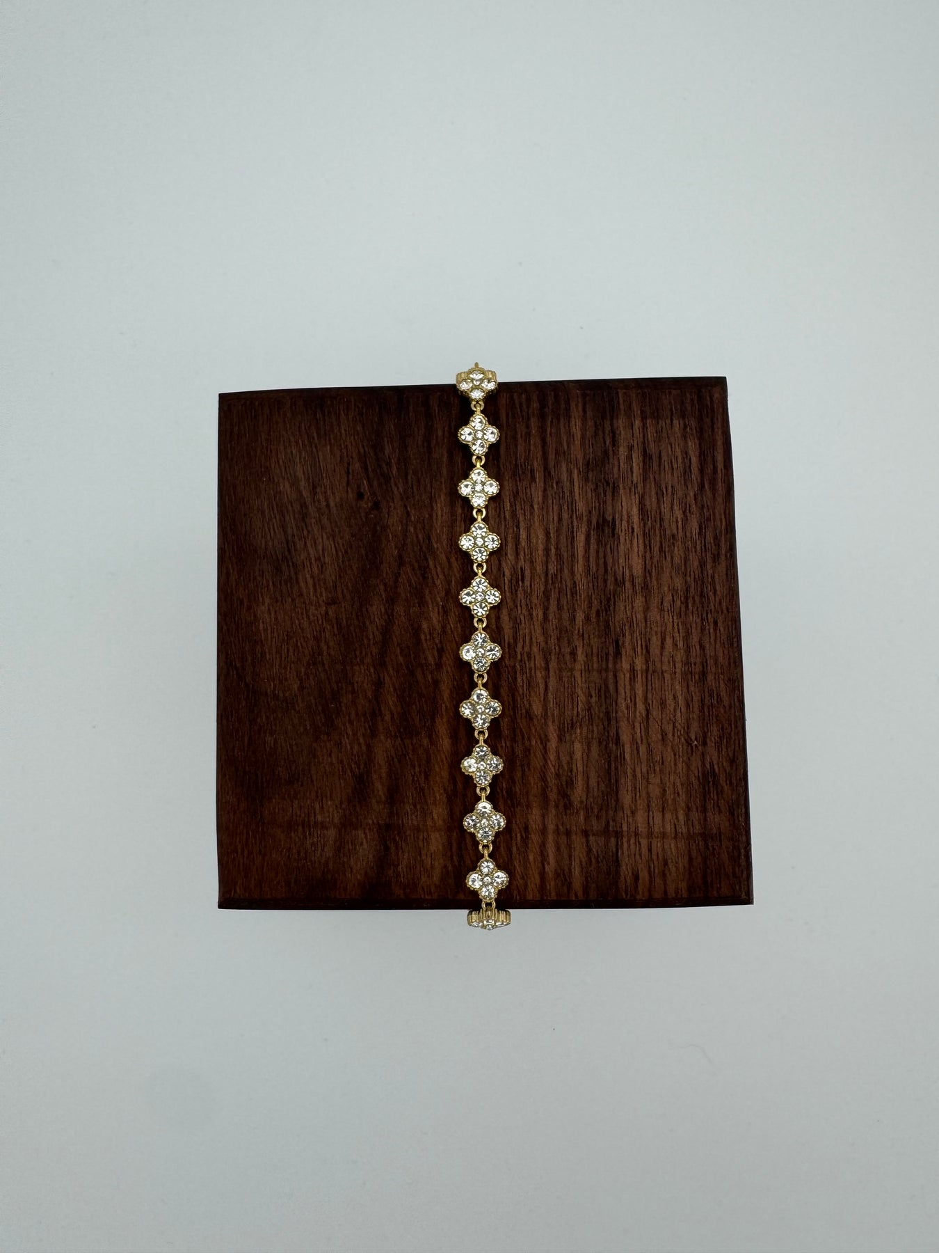 Le bracelet doré à motifs floraux sertis de strass séduit par son éclat raffiné, son style élégant et son effet bijou haute fantaisie. Son enchaînement de petites fleurs lumineuses apporte une touche précieuse au poignet, idéale pour sublimer aussi bien une tenue de tous les jours qu’une tenue plus habillée.