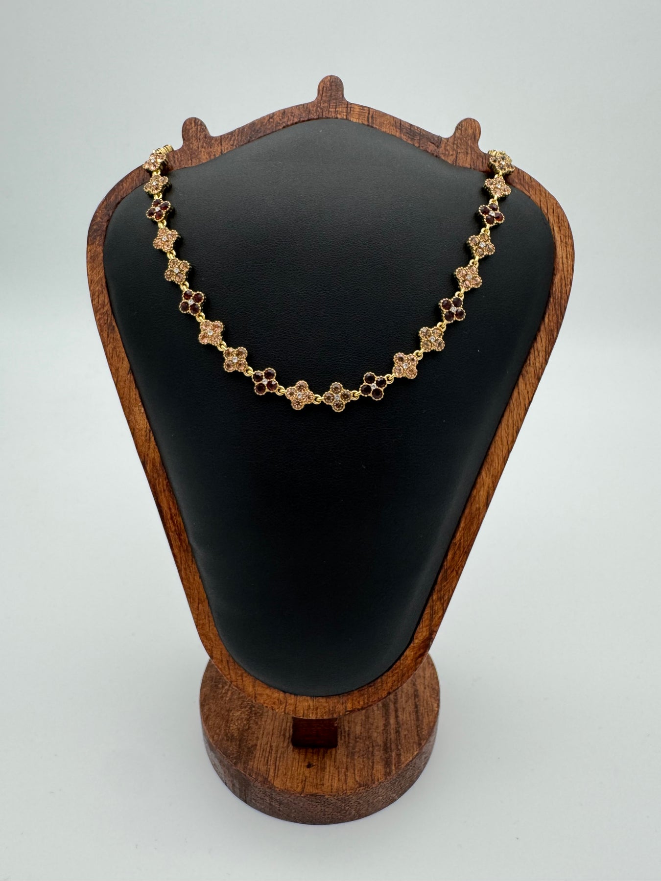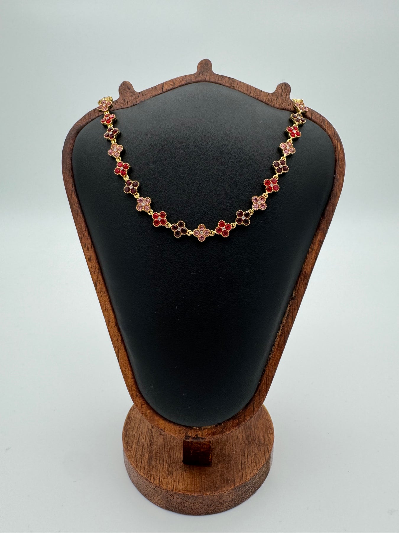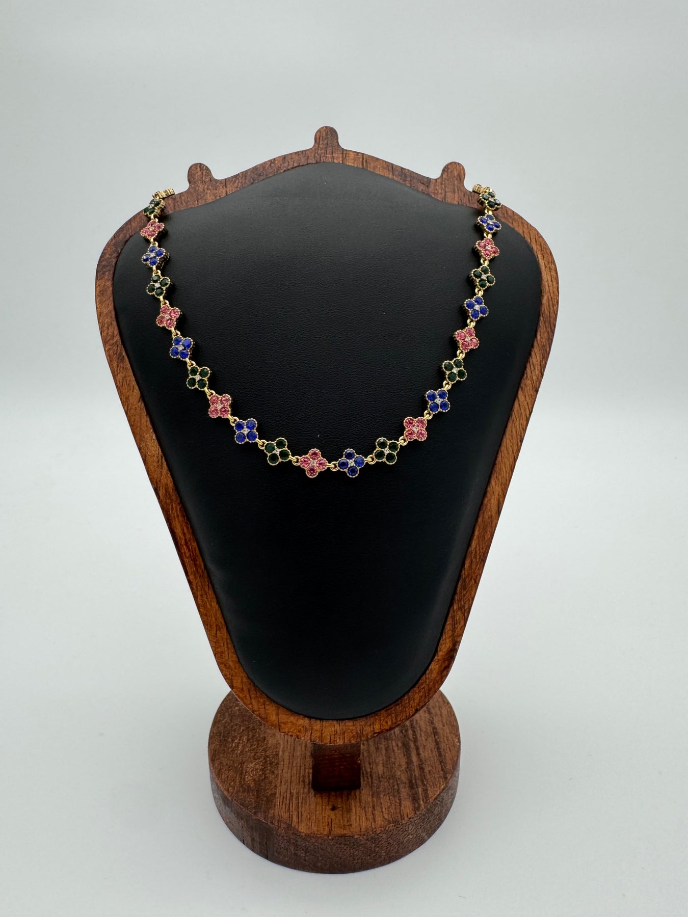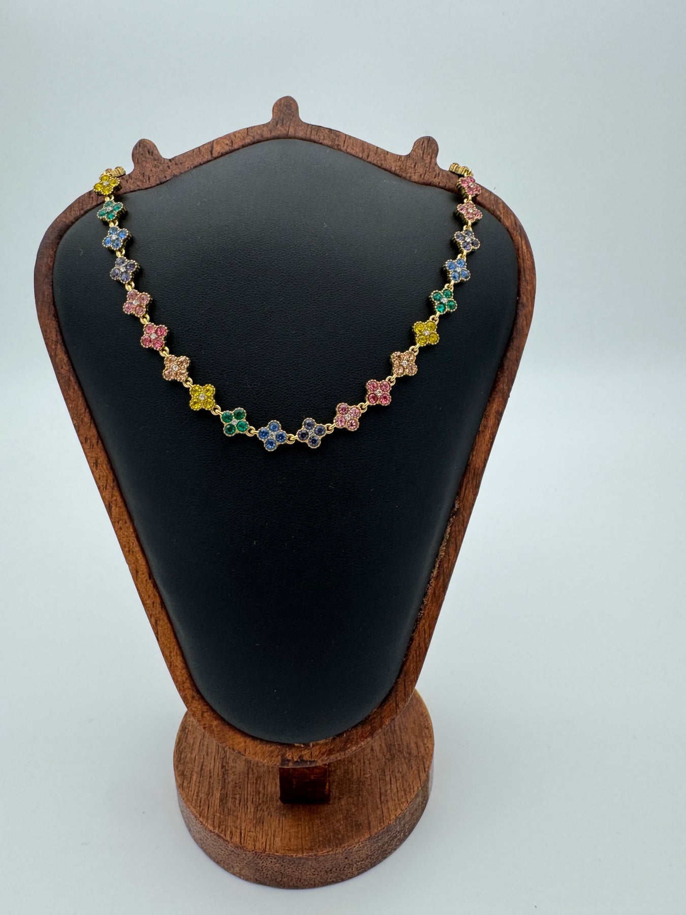 Ces colliers en acier inoxydable ornés de motifs fleurs sertis de pierres colorées apportent une touche élégante, lumineuse et raffinée à votre tenue. Leur design délicat et leur jeu de couleurs subliment le décolleté avec finesse, parfaits pour illuminer aussi bien un look du quotidien qu’une tenue plus habillée.
