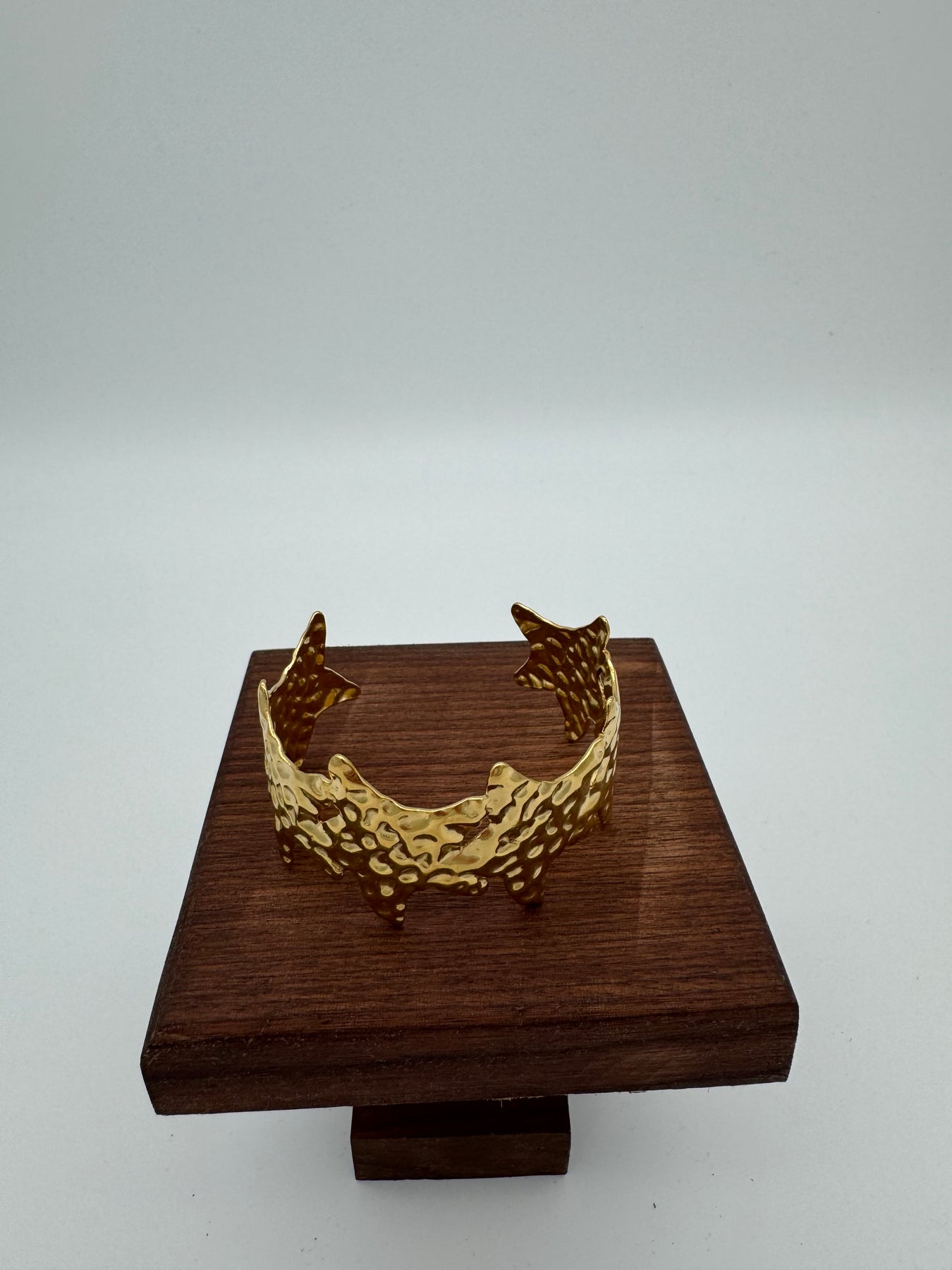 Le jonc ouvert doré au fini martelé séduit par son allure sculpturale et son relief irrégulier très chic. Son design audacieux et lumineux apporte une touche de caractère à votre poignet, parfait pour sublimer une tenue élégante comme un look plus affirmé.