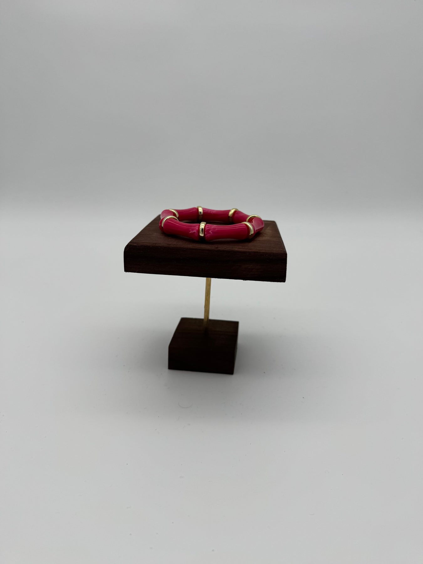 Le bracelet en résine rose et doré apporte une touche lumineuse, féminine et élégante à votre poignet. Son rose intense, sublimé par les anneaux dorés, crée un contraste chic et moderne, parfait pour rehausser une tenue du quotidien comme un look plus habillé.