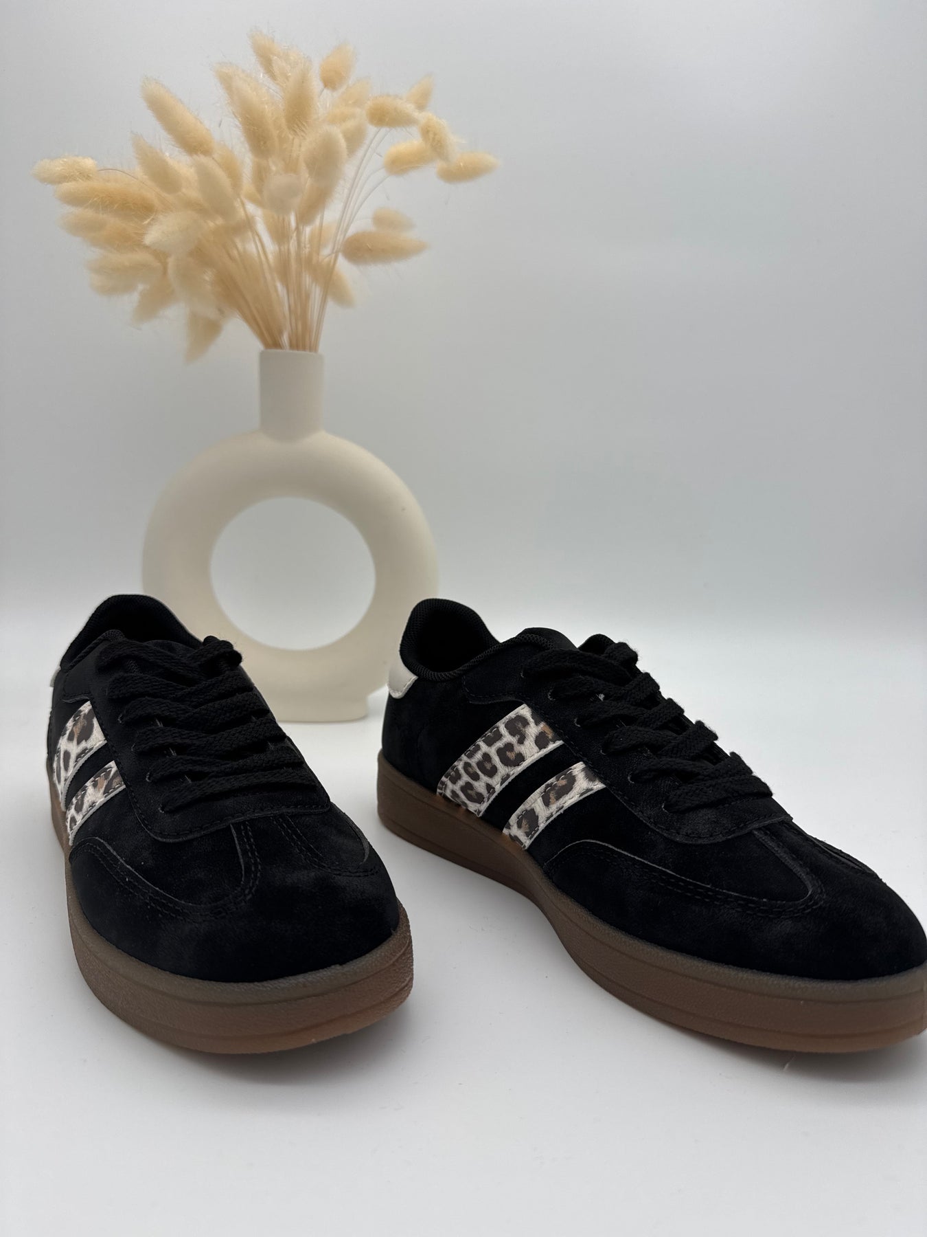 Les baskets Fauve mixent style casual et touche sauvage grâce à leurs bandes latérales effet léopard. Leur noir profond, associé à une semelle miel ultra confortable, en fait une paire facile à porter au quotidien : jean, jogger ou robe, elles apportent immédiatement du caractère à votre look.
